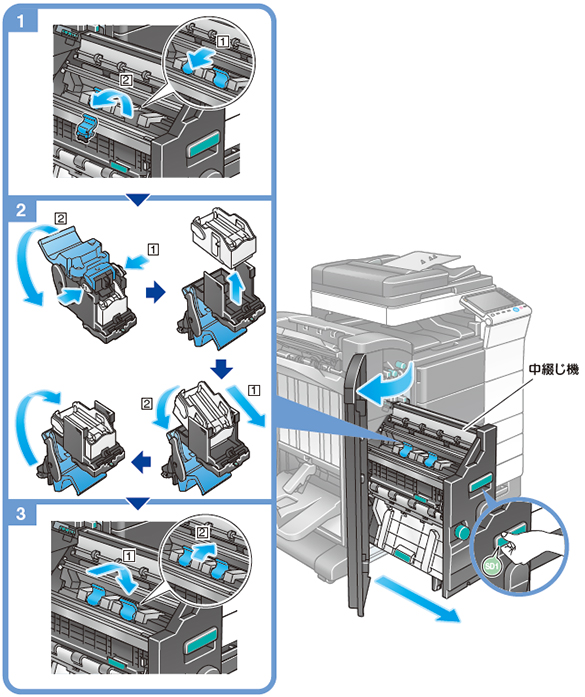 中とじ機SD-511のステープルカートリッジの交換方法を教えてください