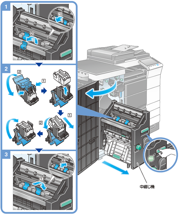 中とじ機SD-512のステープルカートリッジの交換方法を教えてください