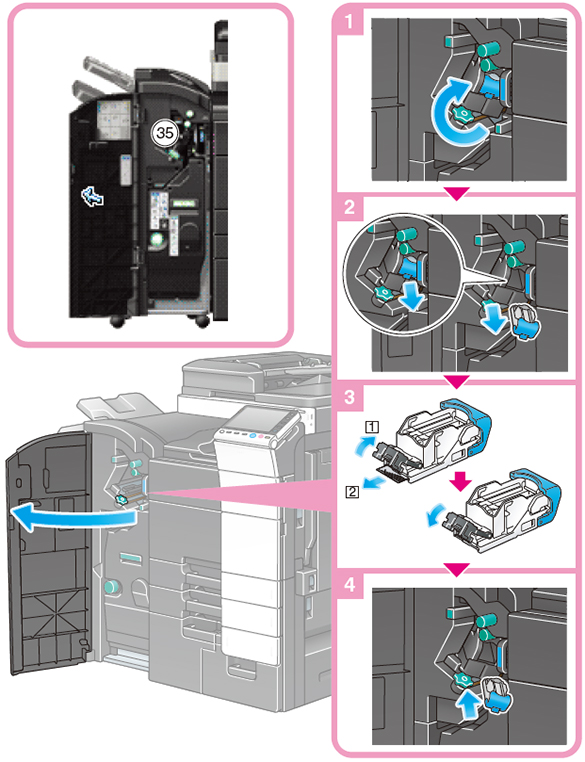 けがをする恐れがありますので、ステープルの針づまり処理にはご注意ください。