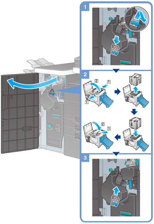 フィニッシャーFS-535のステープルカートリッジの交換方法を教えてください