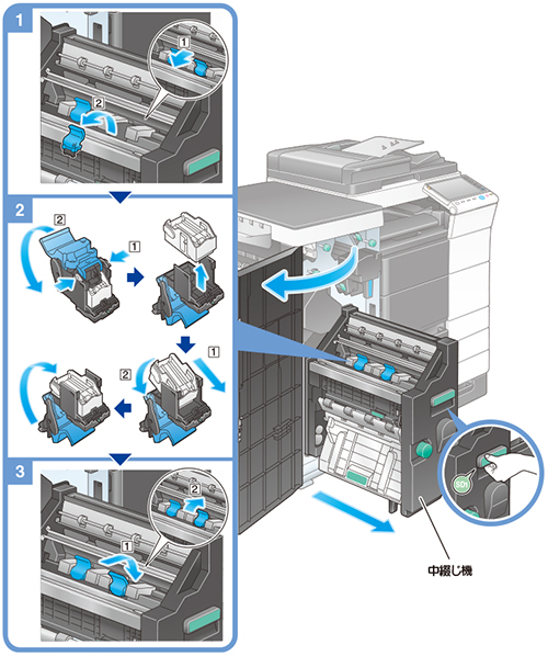 中とじ機SD-512のステープルカートリッジの交換方法を教えてください