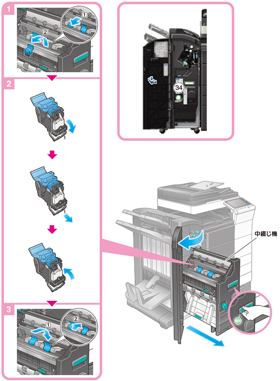 - けがをするおそれがありますので、ステープルの針づまり処理にはご注意ください。