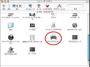 インストールされた[HDD]-[アプリケーション]-[ユーティリティー]内にある[プリントセンター]をダブルクリックします。