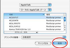 該当するプリンター名を選択して、[追加]ボタンをクリックします。