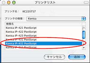 [IP-*** PostScript]を選択し、[追加]をクリックします。