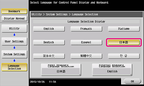 操作パネルの言語を変更したい(英語から日本語に変更したい)