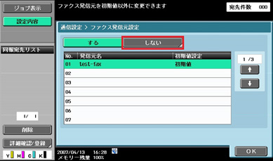 ファクス送信時に個別で発信元を表示しないようにしたい。