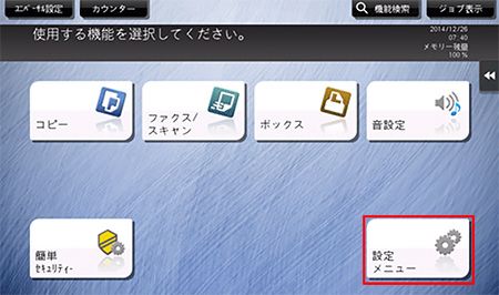 (トップメニューが表示されていないときは、操作パネルの[メニュー]を押すと、トップメニューを表示します。)