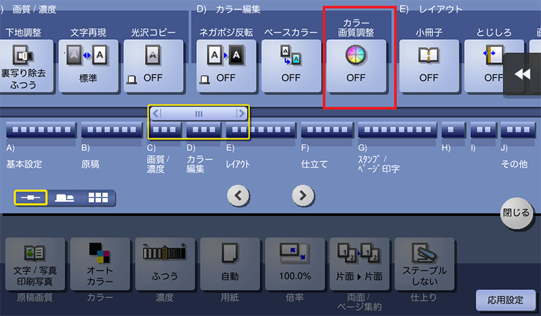 【カラー編集】→【カラー調整】ボタンが表示されない場合は、ファームウェアのバージョンアップが必要です。