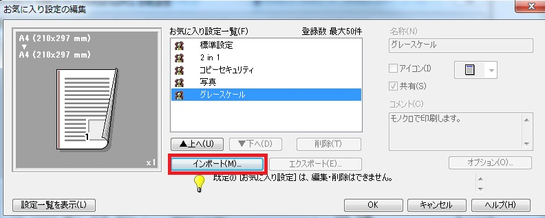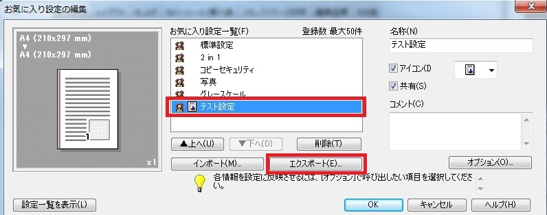 ドライバのお気に入りに設定した内容を、他のPCにも適用したい。