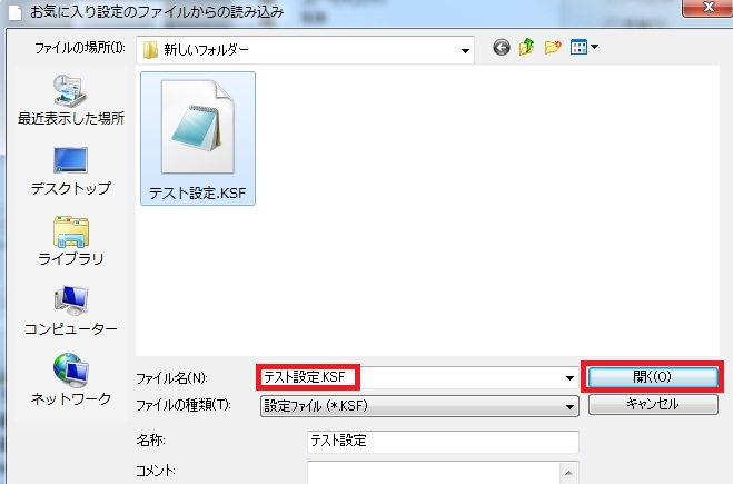 ③ 任意の名前を付けて頂き、設定ファイルを保存します。