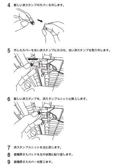 済スタンプのインクが薄くなったときは、以下の手順で交換してください。