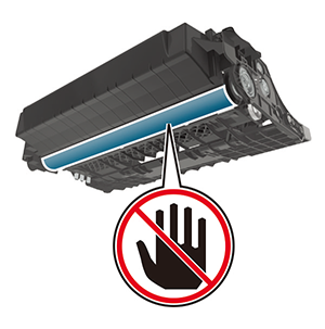 警告—破損の恐れあり: フォトコンダクタードラムには触らないでください。触れると、今後の印刷ジョブの印刷品