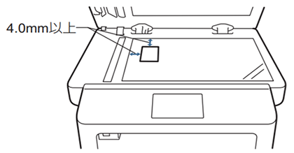 イラストのように、原稿台ガラスの左側に、端から4.0mm以上空けてカードをセットしてください。