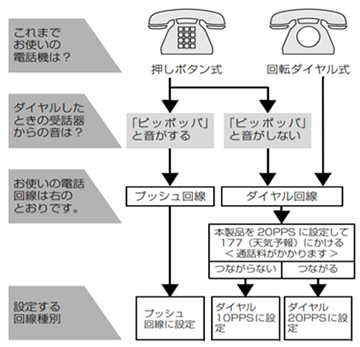 自動で回線種別を設定できなかったときや、引越しなどで電話がかからなくなったときは、以下の手順で、利用中の電話回線に合わせて設定します。