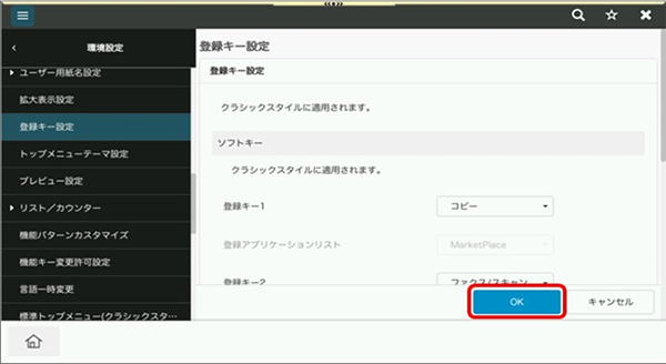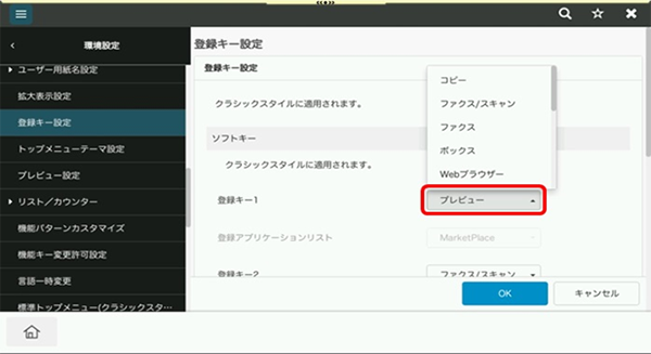 5.ソフトキーの登録キーで表示させたい機能を選びます。