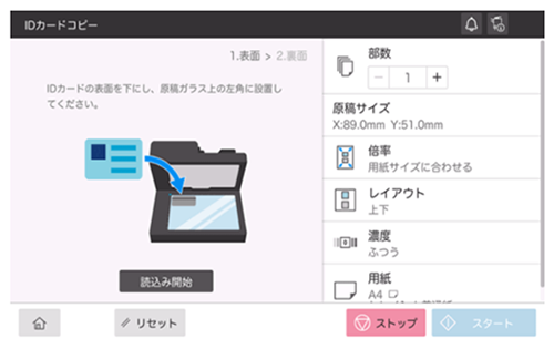 6.スタートキーでカードの裏面を読込み、コピーを開始します。
