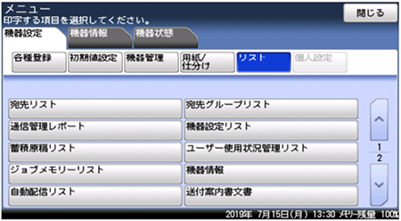 - 「ページ集約」を[ON]にすると、リスト 2 枚分を 1 枚の用紙に並べてプリントします。
