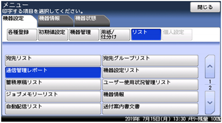 - レポートのみかたの詳細は、「bizhub 2031/2031f、bizhub 1843f 取扱説明書 スキャナー・ファクス編」の「通信管理レポートのみかた」(7-14 ページ)を参照してください。