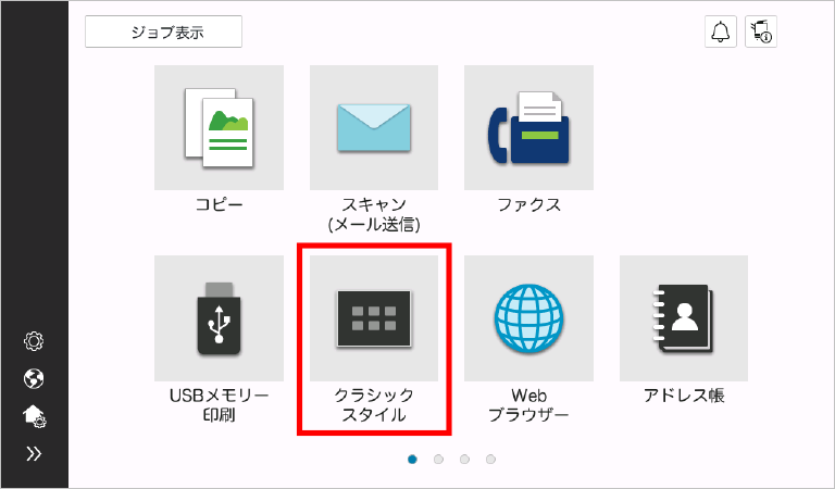 ベーシックモードご利用時は、下図のようなトップメニューにある[クラシックスタイル]を選択し、クラシックスタイルのトップメニューを表示してから[Fiery]を選択してください。
