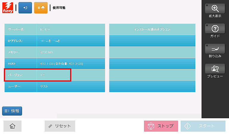Fieryコントローラー IC-420のバージョンは、どこで確認できるのでしょうか?