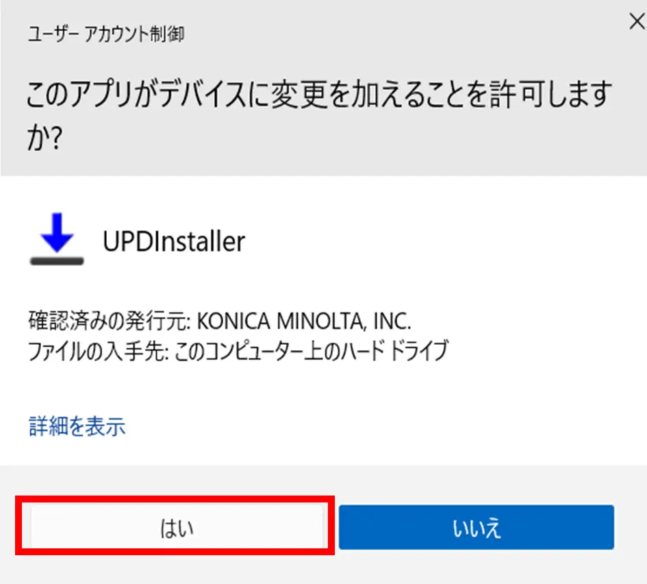 - [ユーザーアカウント制御]に関する画面が表示されるときは、 [はい]をクリックします。