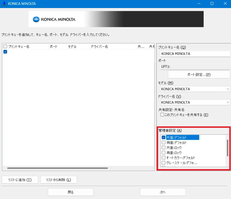 「片面」と「両面」を両方使用される場合は「○○:デフォルト」を選択してください。