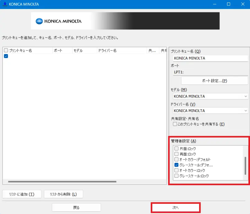 次に「プリンタードライバーの利用設定」手順へ進みます。