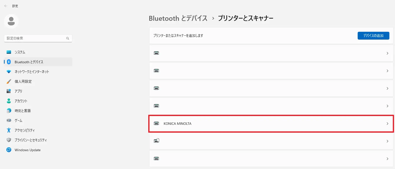 - Windowsの検索窓に「プリンタ」と入力し「プリンターとスキャナー」を開きます。