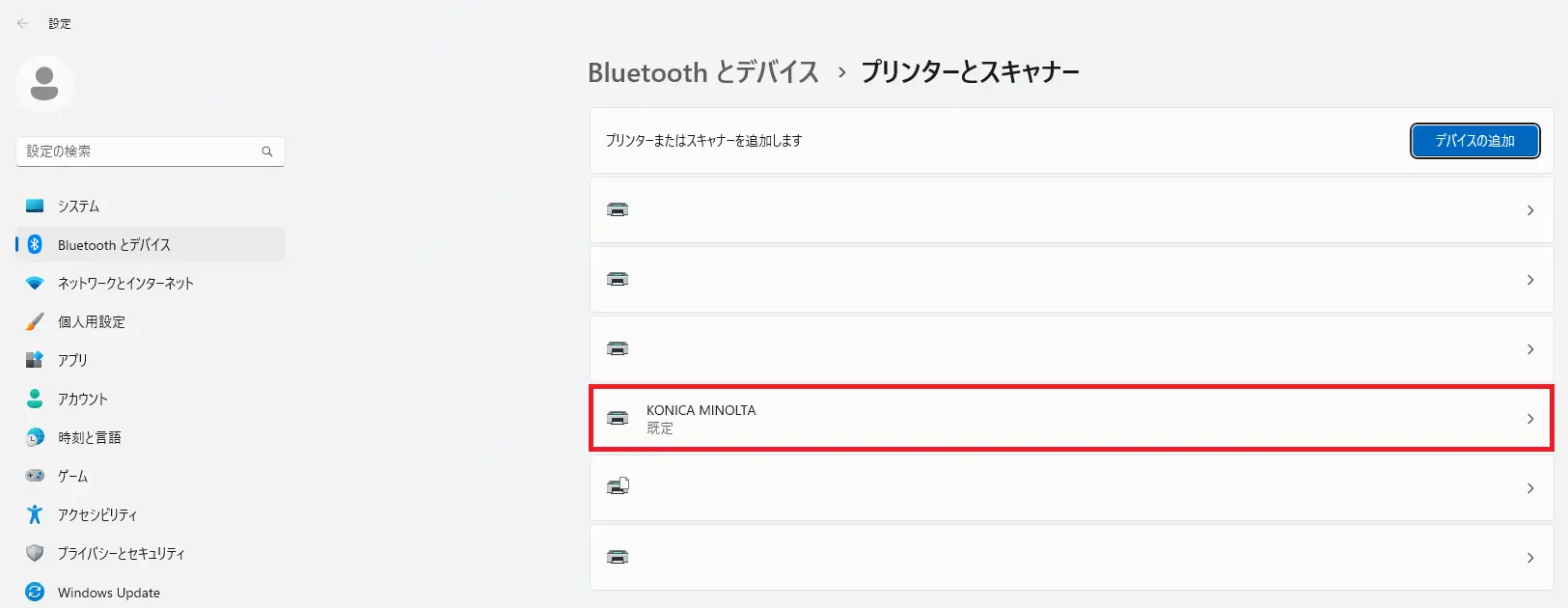 - 使用しているプリンターをクリックします。