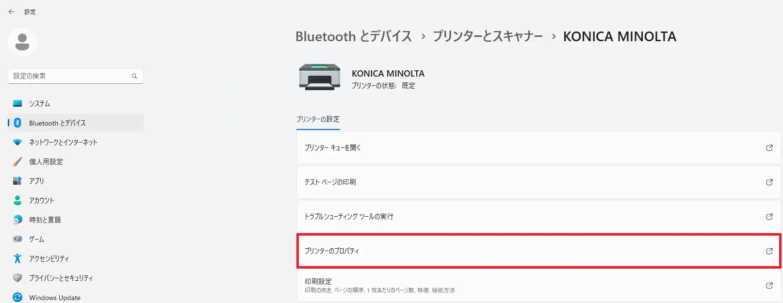 - [プリンターのプロパティ]をクリックします。