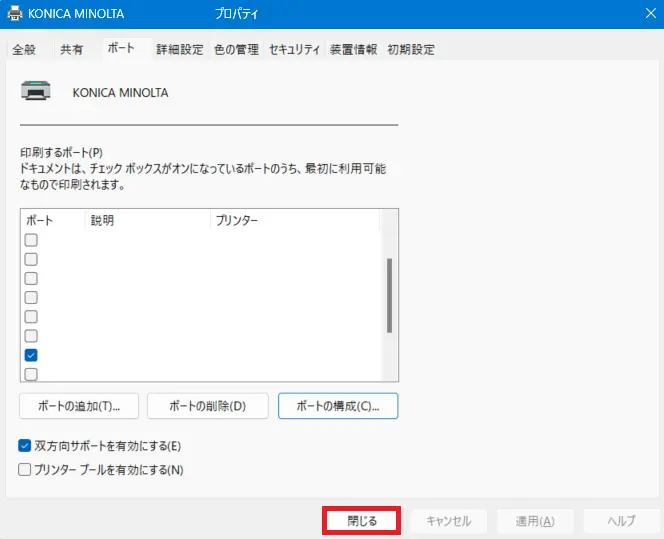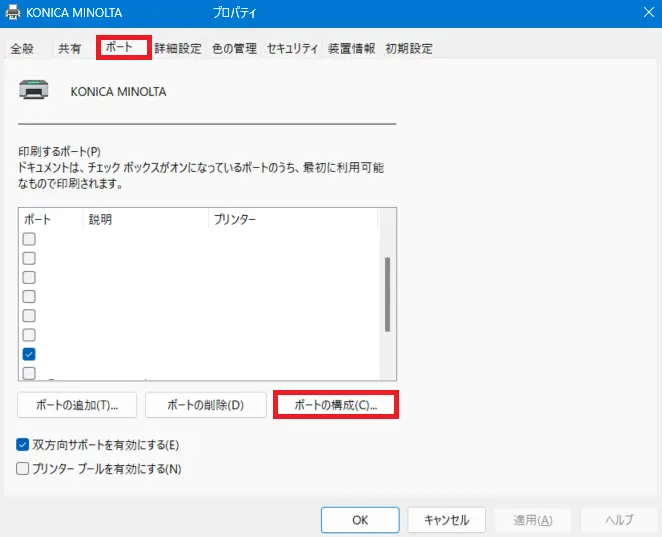 - [ポート]タブを選択し、[ポートの構成]ボタンをクリックします。