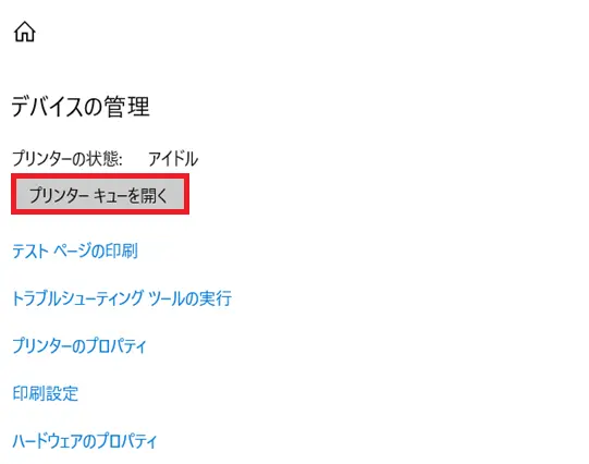 - [プリンターキューを開く]をクリックします。
