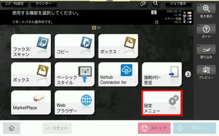 - 本作業は複合機管理者の方にご確認の上、実施をお願いいたします。
