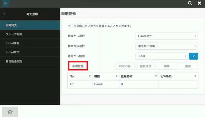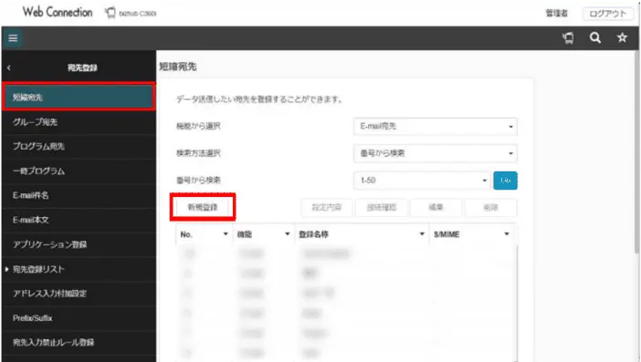 - ログイン後、左側のメニューから[宛先登録]を押します。