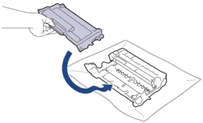 - トナーカートリッジを新しいイメージングユニットへ正しい位置に固定されるまでしっかりと押し込みます。