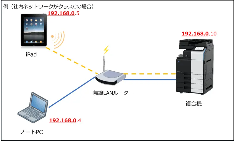 - 下記の図は社内ネットワークがクラスCの場合を例としています。