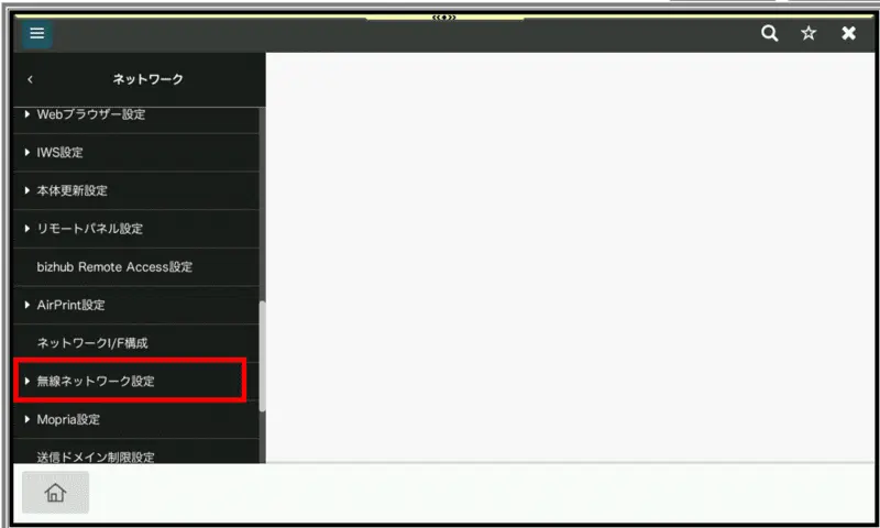 - [無線ネットワーク設定]を押します。