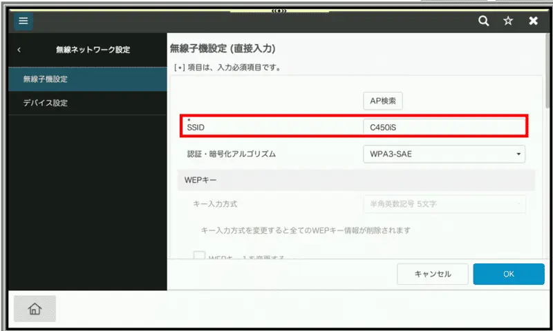 - [SSID]が現在接続されている複合機のSSIDとなります。