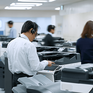 お客様環境を把握し、技術的なサポートを行う、テクニカルスペシャリストが駐在し、高度な電話サポートを提供します。またコニカミノルタのITサービス向けには専用のITヘルプデスクを備え、専門家による丁寧なサポートを実現しています。