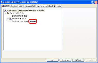 "PostScript Pass through"を"Disable"に設定して下さい。
