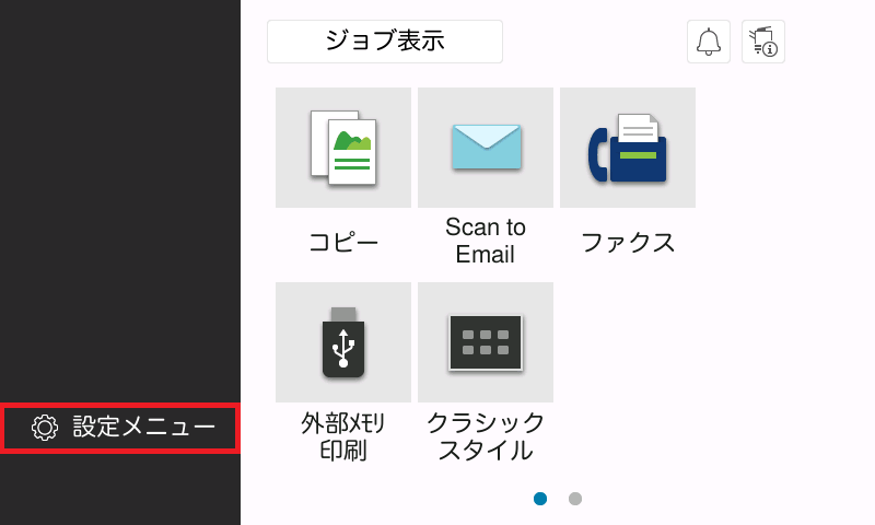 (トップメニューが表示されていないときは、操作パネルの[メニュー]を押すと、トップメニューを表示します。)