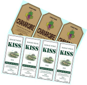 bizhub PRESS C71cfで印刷したワインラベルサンプル。安全で濡れても滲まず、小ロット多品種印刷に最適です。