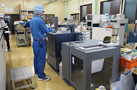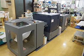「高品質化と効率化、この2つの問題に対処するために、デジタル印刷機を導入することにしました」と志川様。(株)カナエ様の工場には複数台のデジタルラベルプリンターが設置され、フル活用されています。