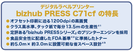 デジタルラベルプリンター bizhub PRESS C71cfの特長