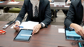 今回は計180台のタブレットを準備。会議前日夕方に、「Smart Discussion」を使用し約1時間半で、会議資料の配信を完了。当日は参加団体すべてに1台ずつタブレットを配布し、参加者が会議中に資料を自由に閲覧できるようにしました。シンプルな活用とわかりやすさで、はじめて使用する参加者もとまどうことなく会議進行ができました。また、会議後はタブレットを回収して撤収。紙資料の放置も皆無でした。
