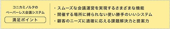 資料を参照しつつ進める我々の会議が求めるものとは、ちょっと方向性が違っていました」と金子様は振り返ります。叶えたいのは、資料をしっかり表示できて、会議を円滑に進められること。その結果、行き着いたのがペーパーレス会議システムという選択でした。