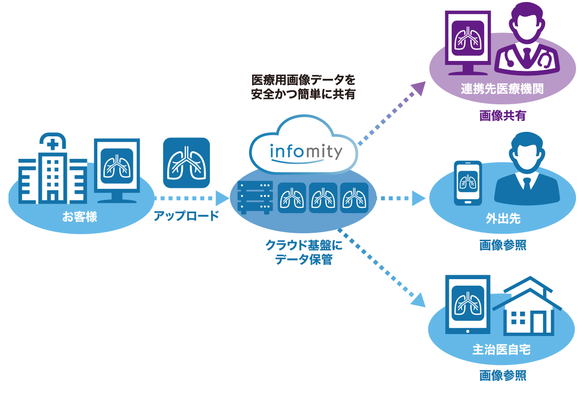 病院間での画像連携、院外からの画像参照、医師への情報提供など、迅速で高度な情報連携が実現します。