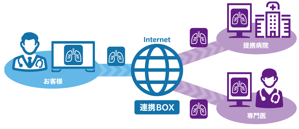 - 検査結果データや読影レポートも、オンラインで提供できます。