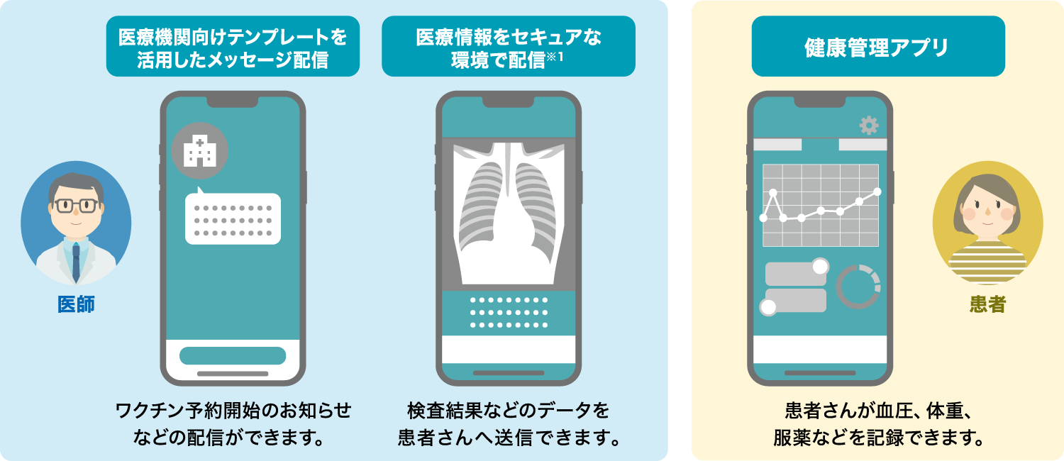- 医療機関から患者さんにメッセージや検査結果を配信することができます。